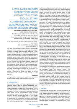 This paper presents the development of a web application for automated cutting tool selection in machining, addressing the limitations of manual, experience-based choice that is time-consuming and difficult to standardize. The system is implemented as a three-tier client–server application, featuring a Java backend, a PostgreSQL database, and a React frontend. A proposed hybrid decision-making procedure that contains constraint satisfaction (CSP) is first used to filter feasible tool–holder–adapter sets, followed by multi-criteria decision-making (Analytic Hierarchy Process for criteria weighting, Weighted Sum Model and Technique for Order of Preference by Similarity to Ideal Solution for ranking) to select the most suitable alternative. The database combines Entity-Relationship and Entity-Attribute-Value models to store machines, parts, materials, and user-generated technical solutions, enabling the accumulation and reuse of experience. The approach is validated on a semi-finishing turning case of Inconel 718, where the system automatically ranks available sets and generates an order statement.