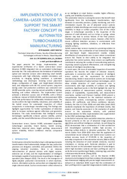 The paper presents the design, implementation, and experimental verification of a hybrid camera–laser sensor (Keyence IX‑080) integrated into an automated turbocharger assembly line. The study addresses the limitations of traditional optical and inductive sensors when detecting small metallic components with high reflectivity, variable orientation, and sensitivity to changing lighting conditions. A systematic methodology was developed, including sensor placement design, configuration of image‑ and height‑based detection tools, and integration with the PLC control system. Long‑term testing under real production conditions was conducted over 18,000 assembly cycles, covering natural variability in lighting, handling, and surface reflections. The implemented system achieved a detection success rate of 99.89%, with a Wilson confidence interval of 99.80–99.94%, and demonstrated 100% Poka‑Yoke performance for deliberately introduced errors. The results confirm the high reliability, robustness, and suitability of the hybrid sensor for automated inspection of critical components in turbocharger manufacturing. The findings also highlight opportunities for further optimization of detection tools to increase resilience against reflections and geometric deviations. The study demonstrates that intelligent sensing technologies significantly enhance process stability, product quality, and the overall effectiveness of Smart Factory systems.