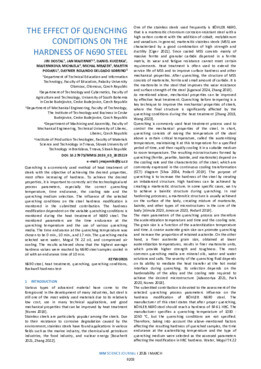 Quenching is a commonly used method of heat treatment of steels with the objective of achieving the desired properties, most often increasing of hardness. To achieve the desired properties, it is important to correctly set the technological and process parameters, especially the correct quenching temperature, time endurance, the cooling rate and the quenching medium selection. The influence of the selected quenching conditions on the steel hardness modification is monitored in the submitted contribution. The hardness modification dependent on the variable quenching conditions is monitored during the heat treatment of N690 steel. The monitored parameters are the time endurance at the quenching temperature and the use of various quenching media. The time endurance at the quenching temperature was chosen to be 0 min., 10 min., and 17 min. The quenching media selected were water, Mogul TK 22 oil, and compressed air cooling. The results achieved show that the highest average hardness values were reached by N690 steel samples cooled in oil with an endurance time of 10 min.