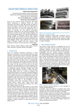 Gears are very common machine components that enable precise transmission of rotational motion and power transmission from shaft to shaft. High demands are placed on the function of gears in operation. They must enable precise, uniform transmission, must not cause noise, often have to transmit large forces, etc. Gears are manufactured from a variety of materials and with different performance specifications depending on the industrial application. Gear materials are required to have high strength, toughness and wear resistance because gears rely on their own design size and material strength to withstand external loads. Material manufacturability is also necessary due to the complex shape of the gear and the high precision requirements of the gear. This study highlights trends in gear materials that are moving towards ultra-high strength, high wear resistance, high temperature resistance, corrosion resistance, and low weight.